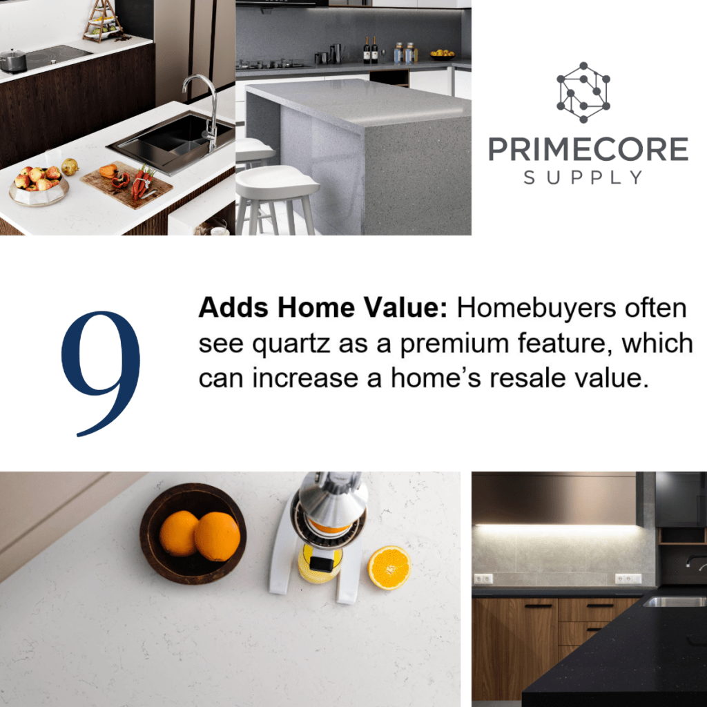 - Adds Home Value: Homebuyers often see quartz as a premium feature, which can increase a home’s resale value.